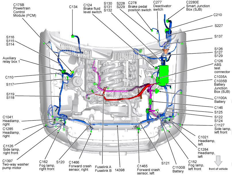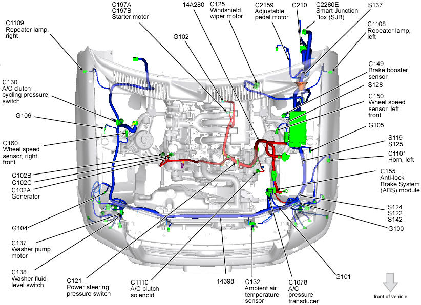 | Anti-Lock Brake System (ABS) Module | Left front of engine compartment. See Figure. |