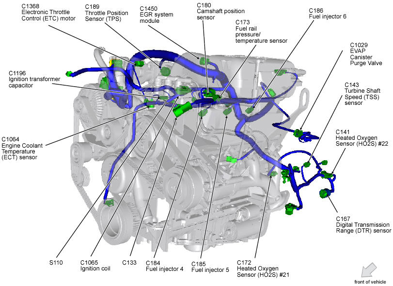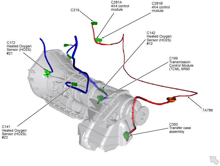| Transmission Control Module (TCM) | Right side of transmission. See Figure. |