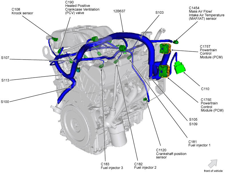 | Powertrain Control Module (PCM) (4.6L) | Right side of engine. See Figure. |