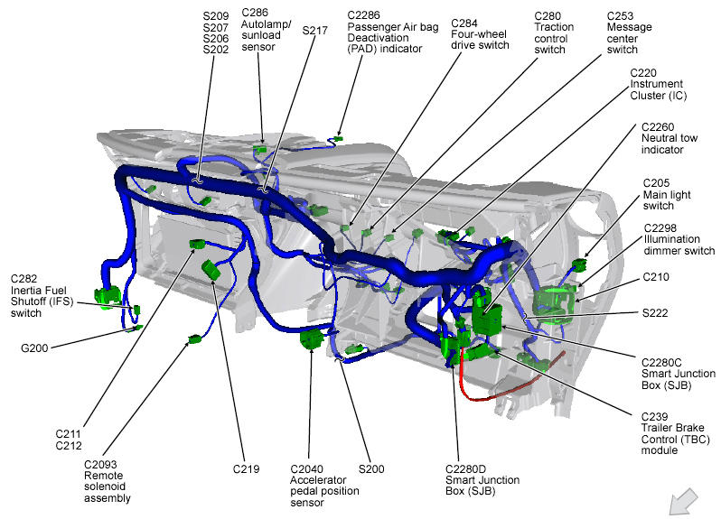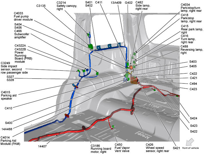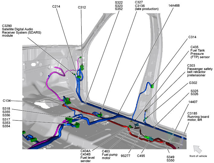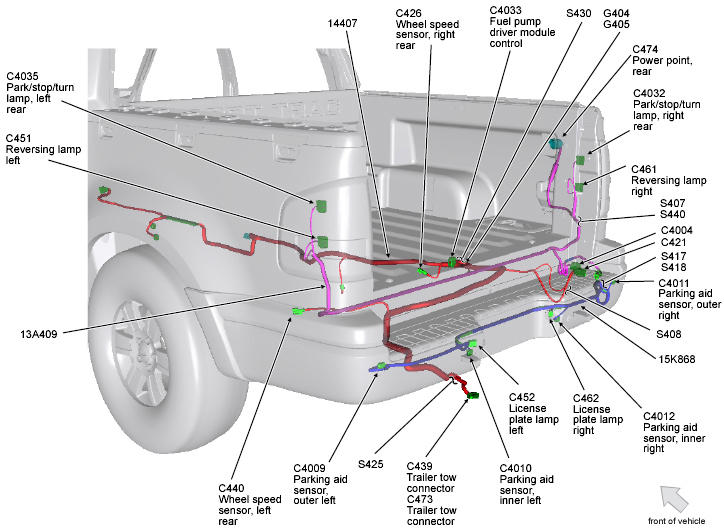 | Fuel Pump Driver Module (Sport Trac) | Right rear of vehicle. See Figure. |