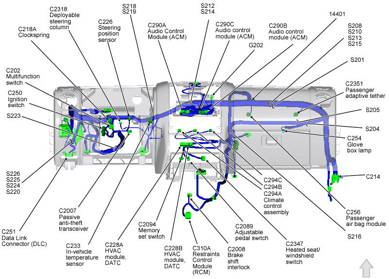 | HVAC Module (DATC) | Center of dash. See Figure. |