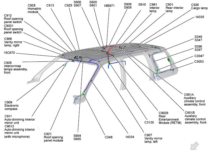 | Roof Opening Panel Module | Center front of roof. See Figure. |