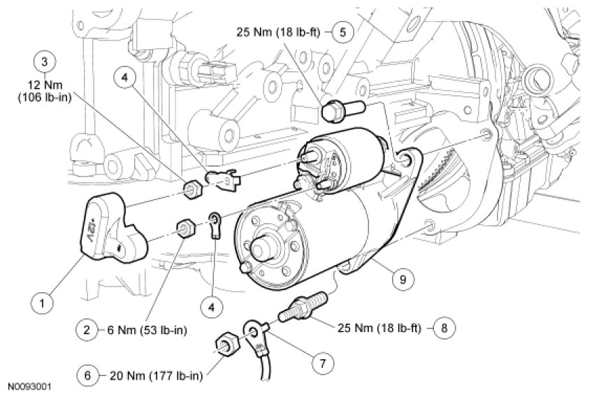 WARNING: Always disconnect the battery ground cable at the battery before disconnecting the starter motor battery terminal lead. If a tool is shorted at the starter motor battery terminal, the tool can quickly heat enough to cause a skin burn. Failure to follow this instruction may result in serious personal injury.