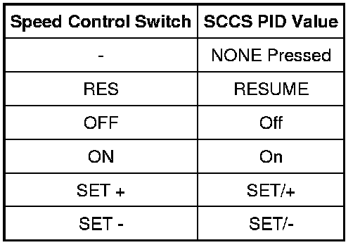 - Press each speed control switch while monitoring the speed control switch PID (SCCS).