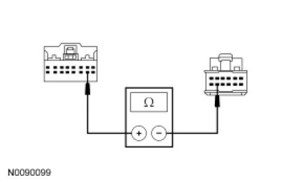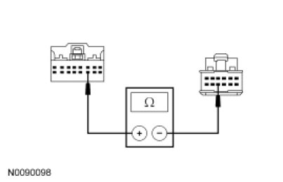 - Measure the resistance between the PCM C175b-30, circuit RES08 (GN/BN), harness side and the clockspring C218a-14, circuit RES08 (GN/BN), harness side.