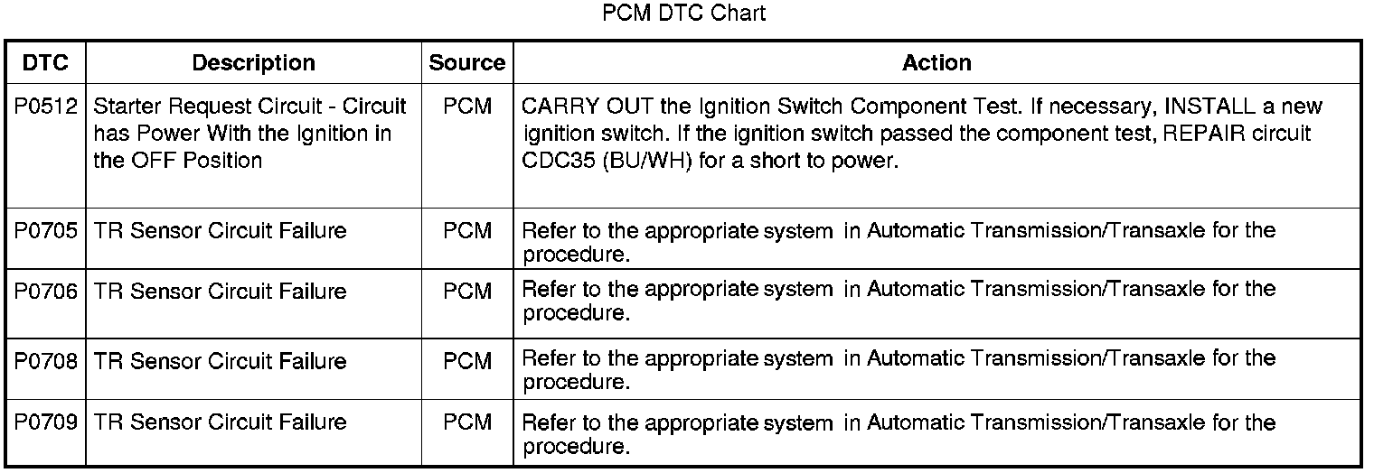 PCM DTC Chart