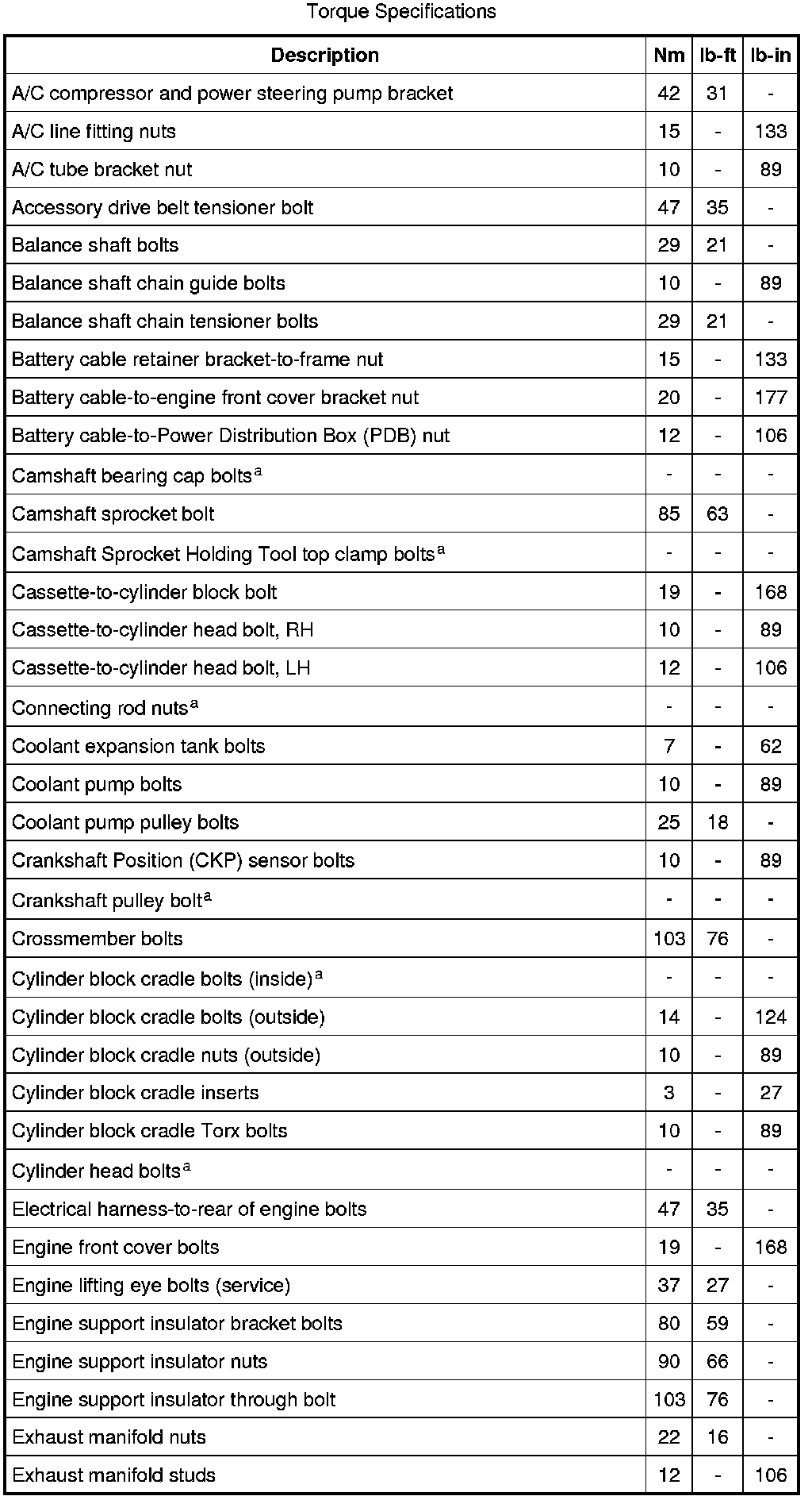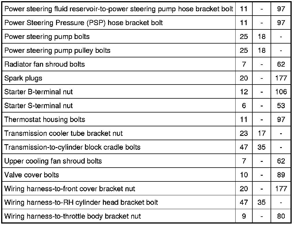 Torque Specifications