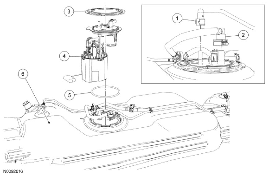NOTE: If the FP does not clear the FP mounting flange on the fuel tank, the use of a screwdriver may be necessary.