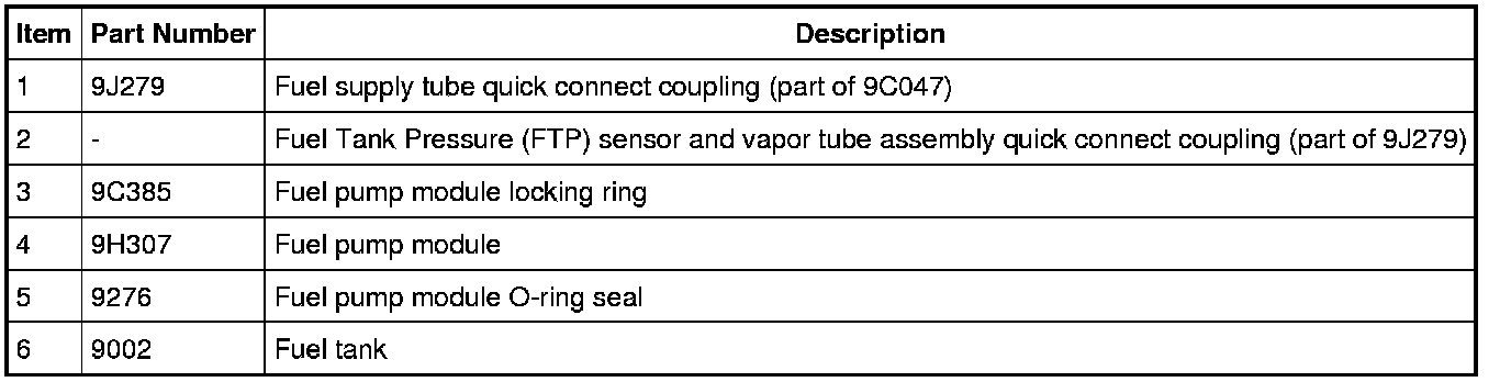 4. Disconnect the fuel supply tube and Fuel Tank Pressure (FTP) sensor and vapor tube assembly quick connect couplings at the FP module.