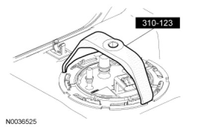 5. Using the Fuel Tank Sending Unit Wrench, remove the FP module locking ring.