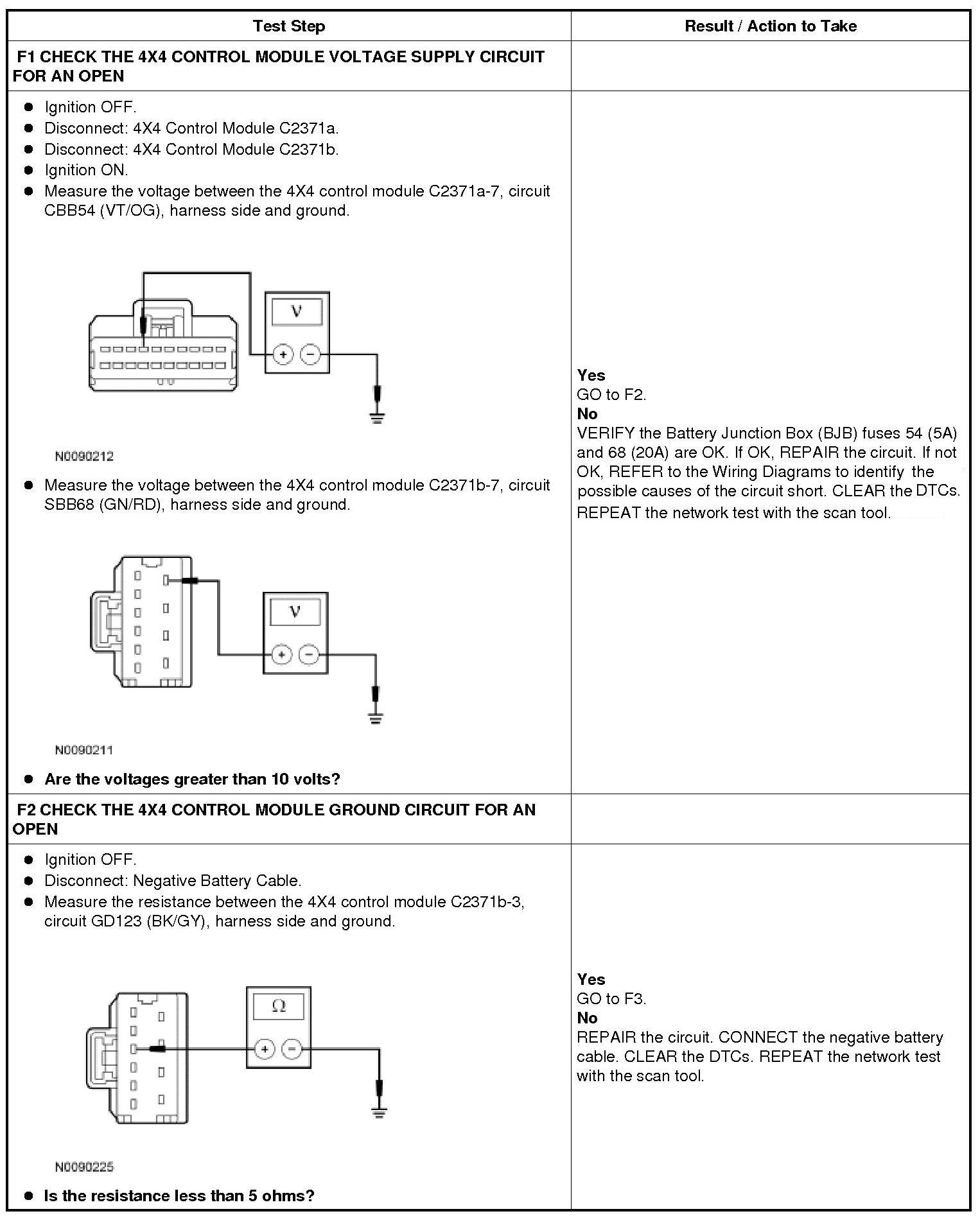 Pinpoint Test F: The 4X4 Control Module Does Not Respond To The Scan Tool