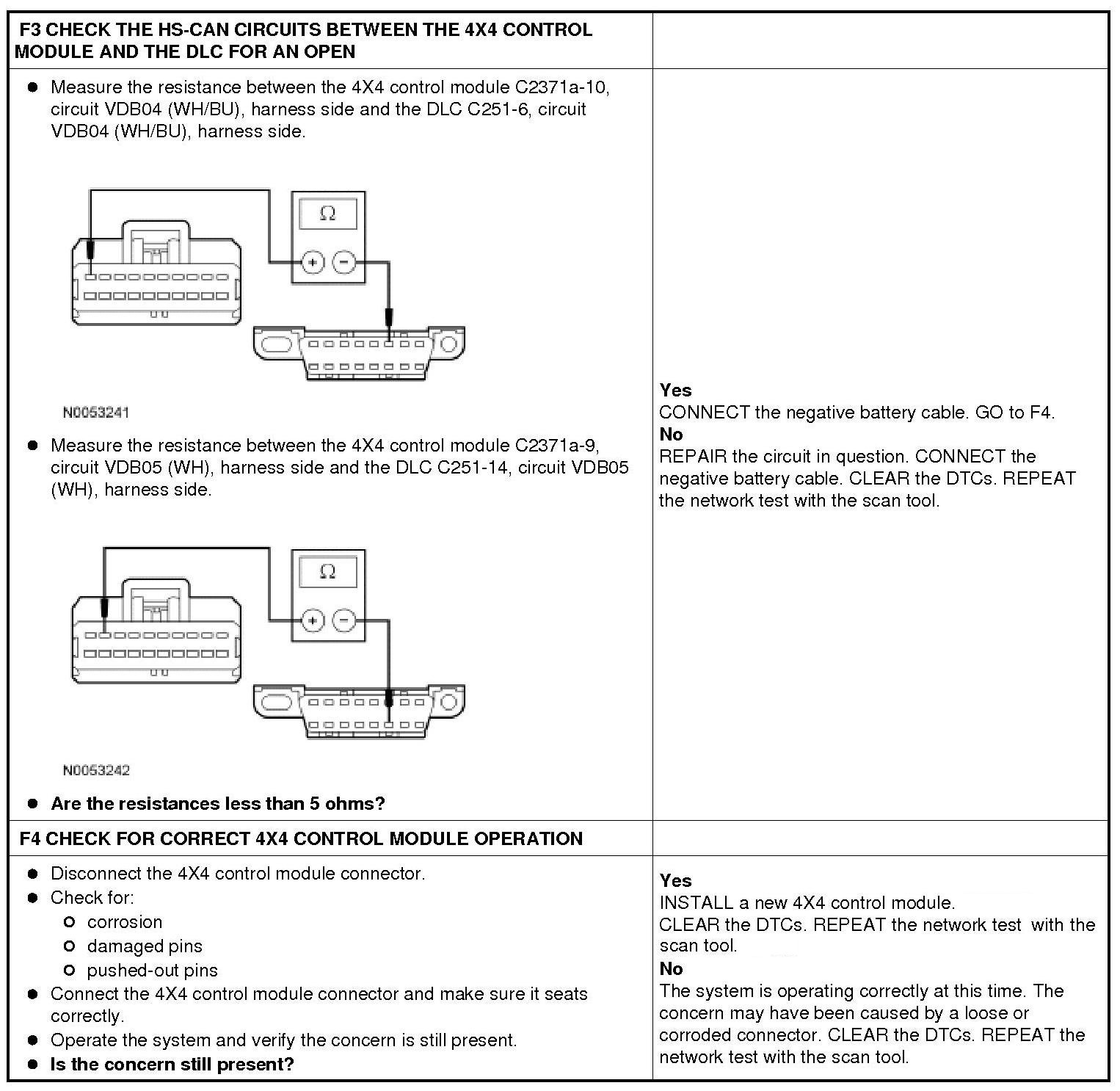 PINPOINT TEST F: THE 4X4 CONTROL MODULE DOES NOT RESPOND TO THE SCAN TOOL