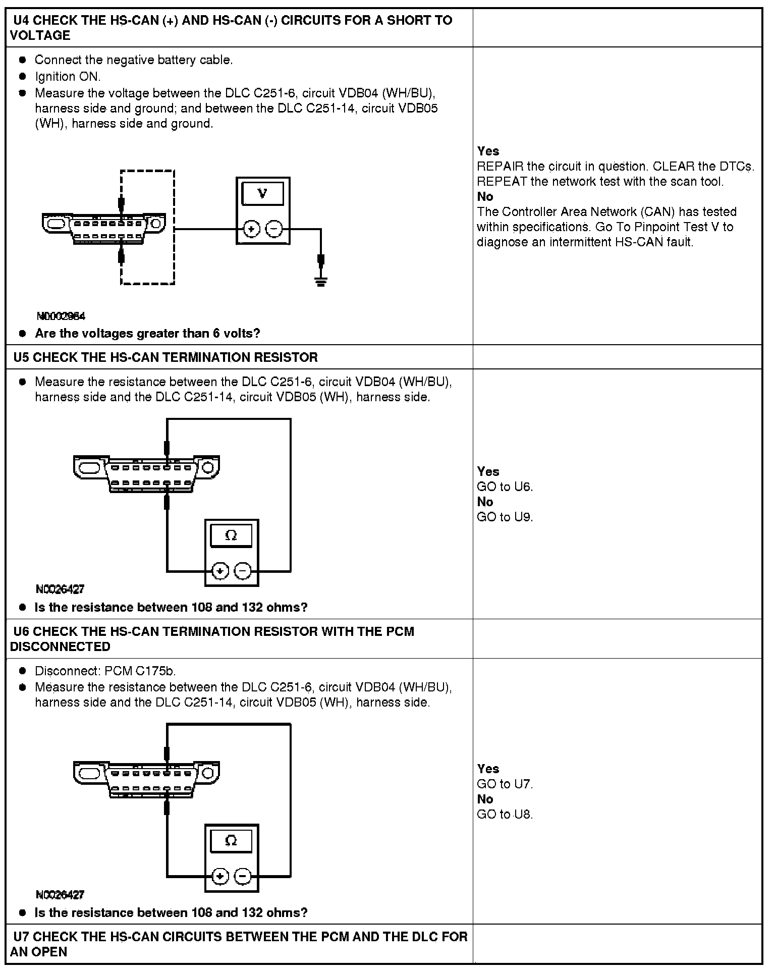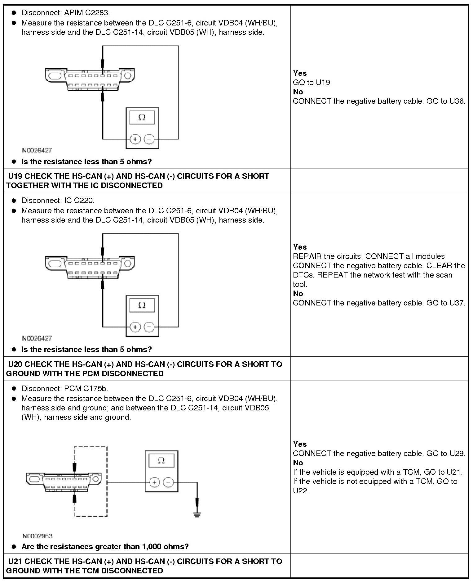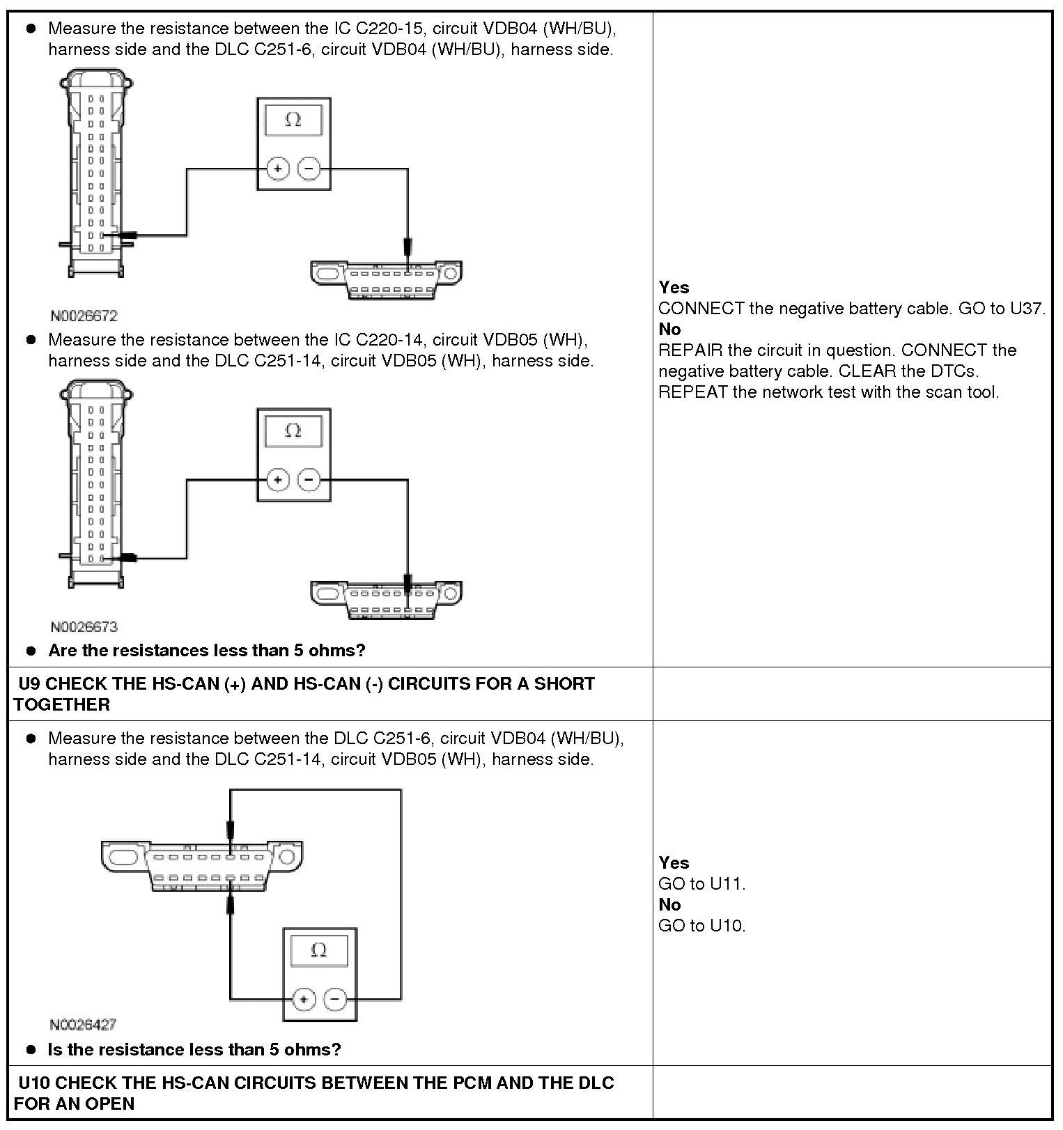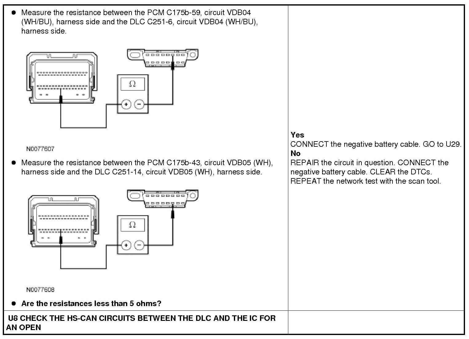 The High Speed Controller Area Network (HS-CAN) uses an unshielded twisted pair cable, circuits VDB04 (WH/BU) and VDB05 (WH).