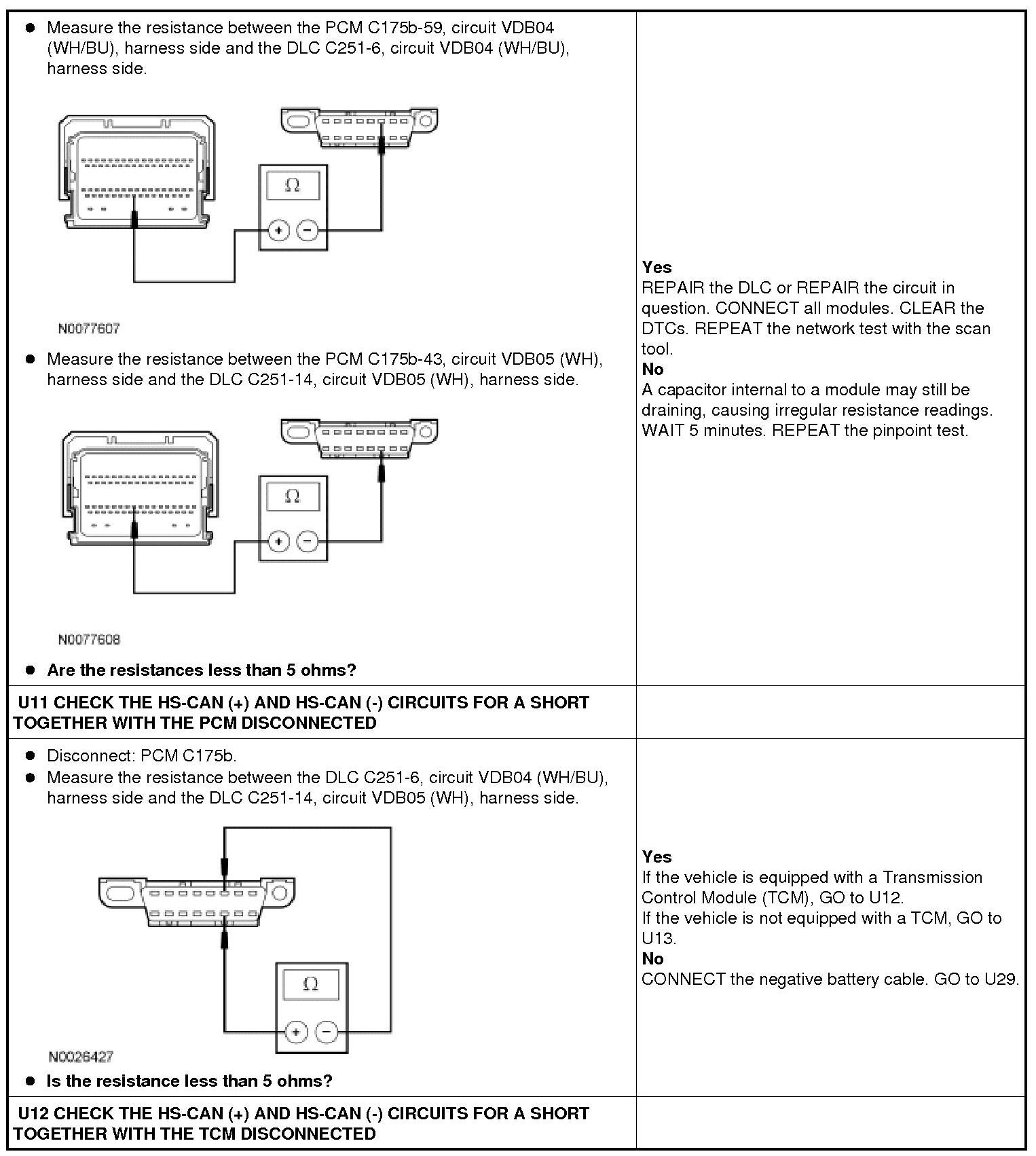 Pinpoint Test U: No High Speed Controller Area Network (HS-CAN) Communication, All Modules Are Not Responding