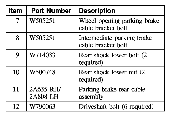 14. Remove the wheel opening park brake cable bracket bolts and reposition the brackets.