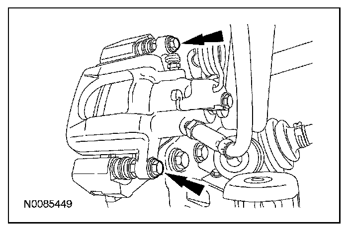 16. Remove the rear brake caliper bolts.