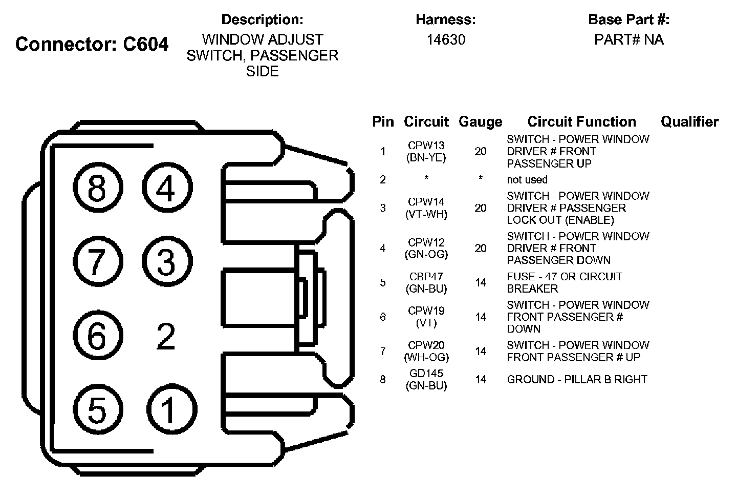 Window Adjust Switch, Passenger Side