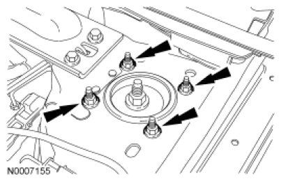 3. NOTE: Do not rotate the strut mount to any other position than 180 degrees from its original position, the notch (located on top of the strut mount) must either point inward (towards the engine) or outward (towards the fender).