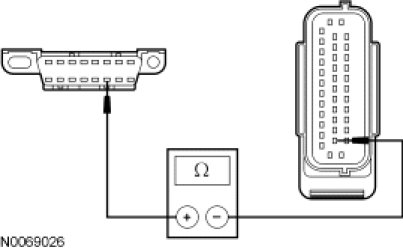 - Measure the resistance between the DLC C251-6, circuit VDB04 (WH/BU), harness side and the ABS module C135-26, circuit VDB04 (WH/BU), harness side.