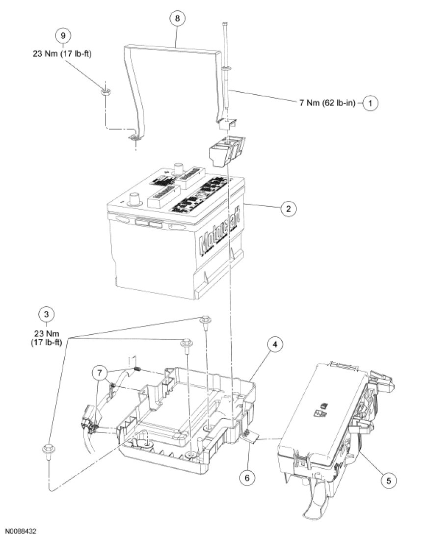 Battery and Battery Tray - Exploded View