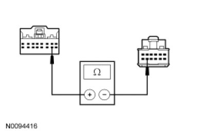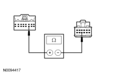 - Measure the resistance between the clockspring C218 pin 14, component side and the upper clockspring pin 9, component side.