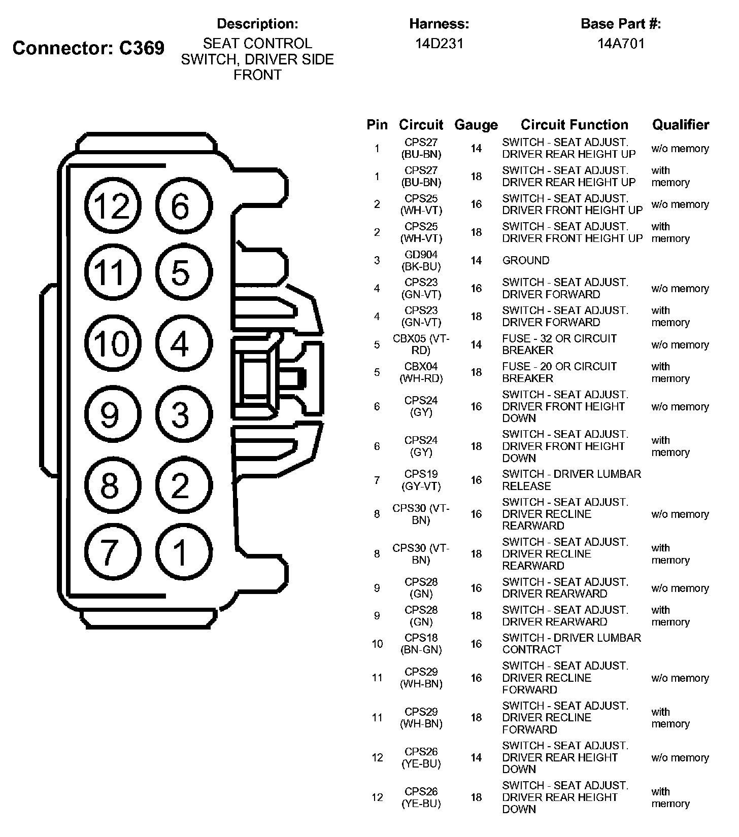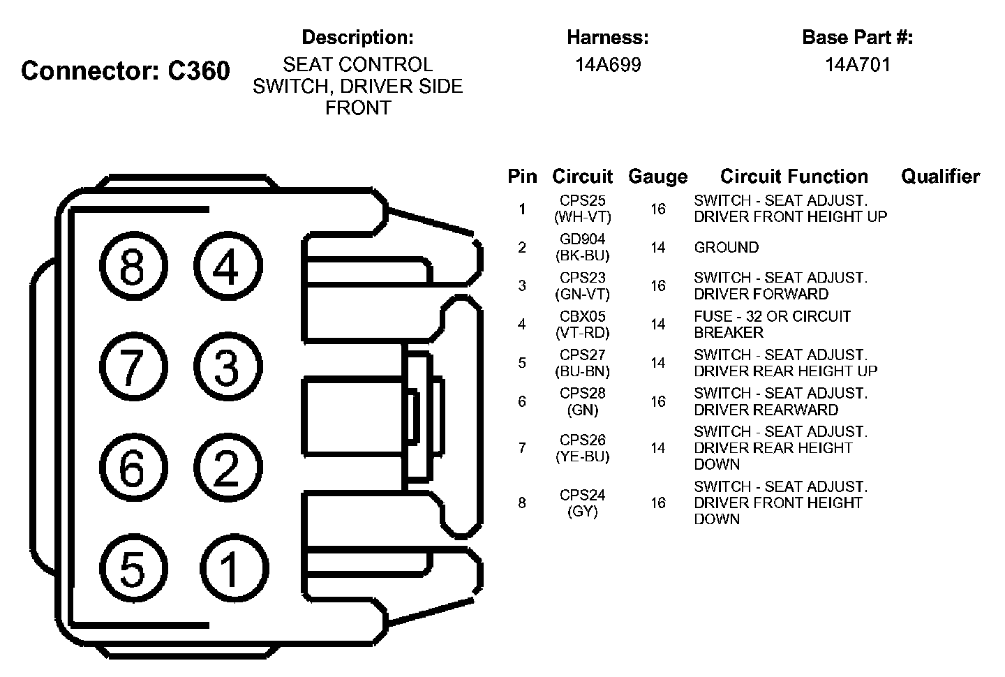 Seat Control Switch, Driver Side Front
