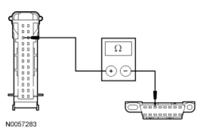 - Measure the resistance between the LTM C4174a-10, circuit VDB07 (VT/OG), harness side and the DLC C251-11, circuit VDB07 (VT/OG), harness side.