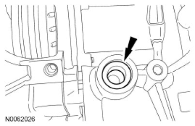 15. Inspect the transaxle case to make sure that the transmission fluid cooler tube seal and backing ring were removed with the transmission fluid cooler tube and are not stuck in the transaxle case. If the transmission fluid cooler tube seal or backing ring are stuck in the transaxle case, remove the seal and backing ring.