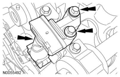 Install the RH secondary timing chain tensioner and the 2 bolts.