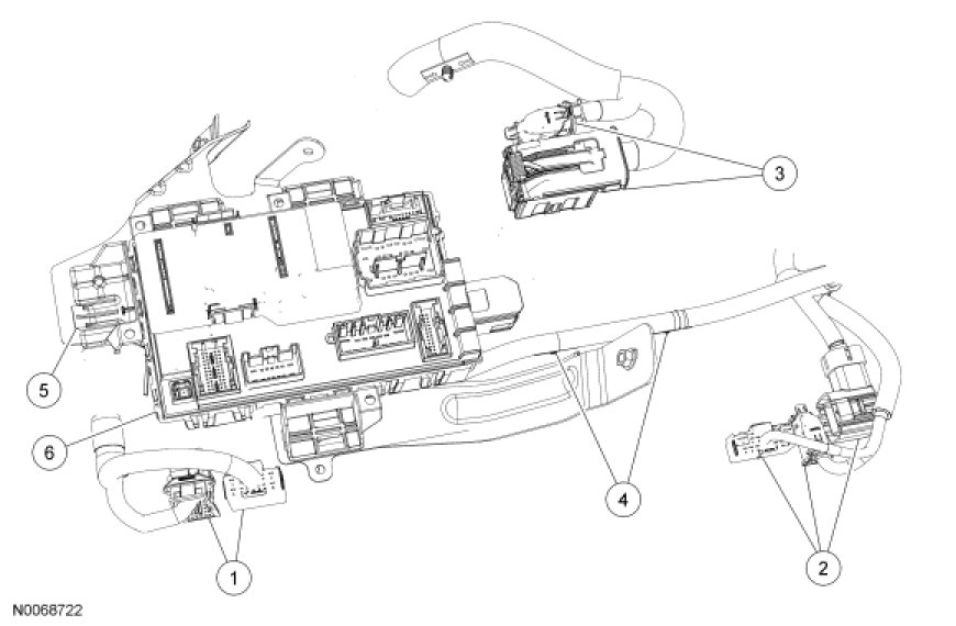 NOTE: Prior to the replacement of the module, it is necessary to upload the module configuration information to the scan tool. This information must be downloaded into the new module after installation. In the event that As-Built data is required (the SJB will not communicate), all Remote Keyless Entry (RKE) devices must be programmed to the new SJB. A minimum of 2 devices are necessary to complete the configuration and turn off the flashing interior lights.
