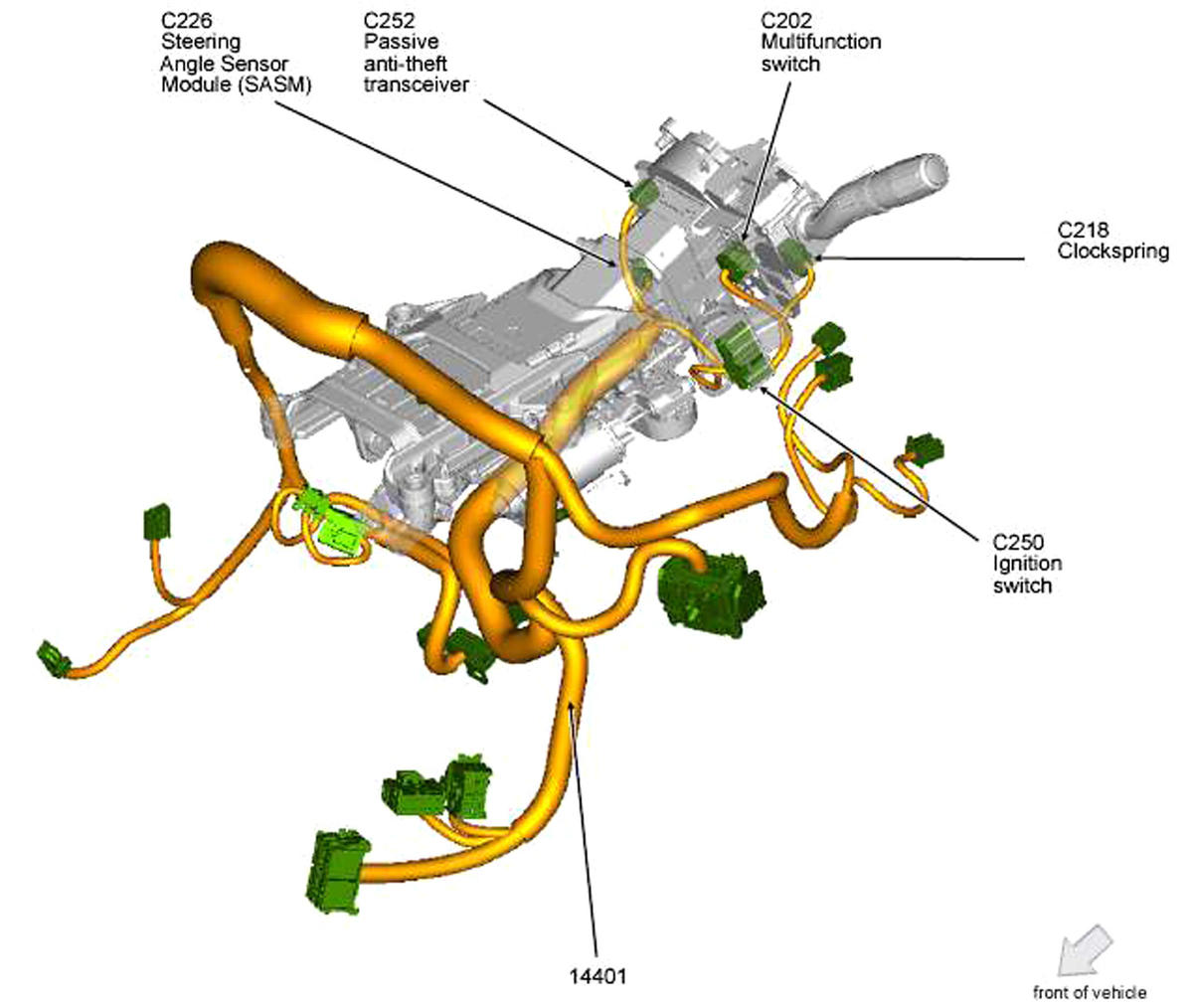 | Steering Angle Sensor Module (SASM) | Top of steering column. See Figure. |
