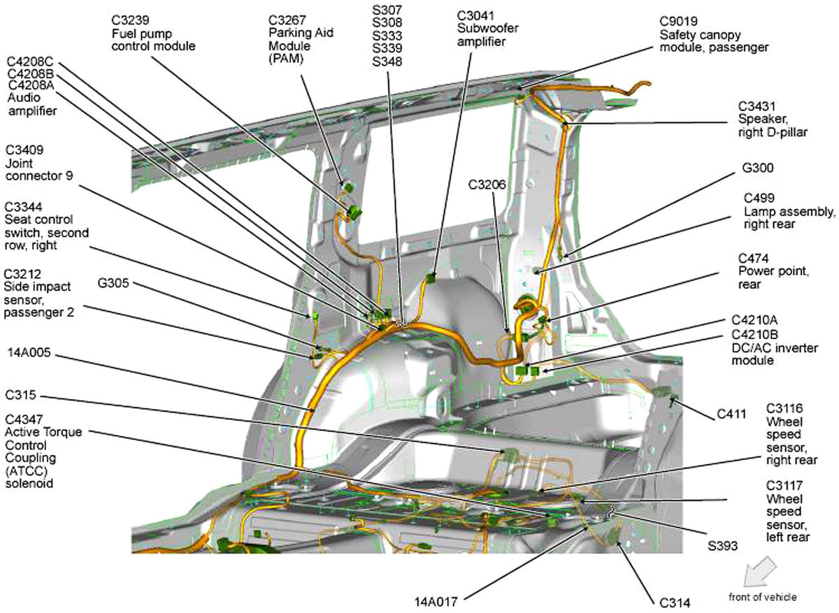 | Parking Aid Module (PAM) | Right "C" pillar. See Figure. |