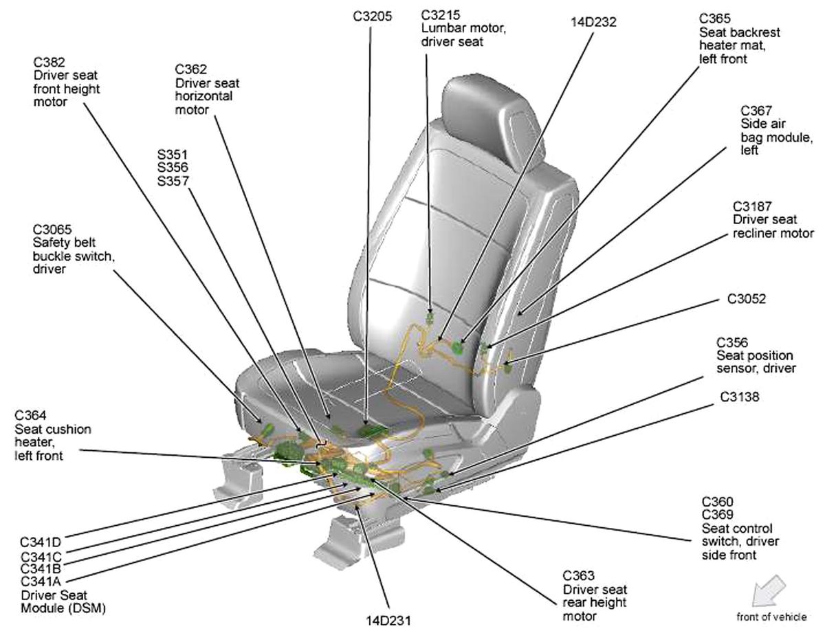 | Seat Module (DSM) (Driver) | Under driver's seat. See Figure. |