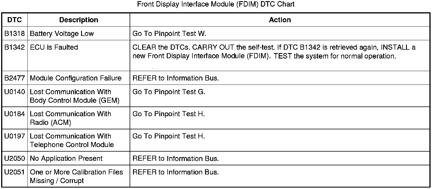 Front Display Interface Module (FDIM) DTC Chart