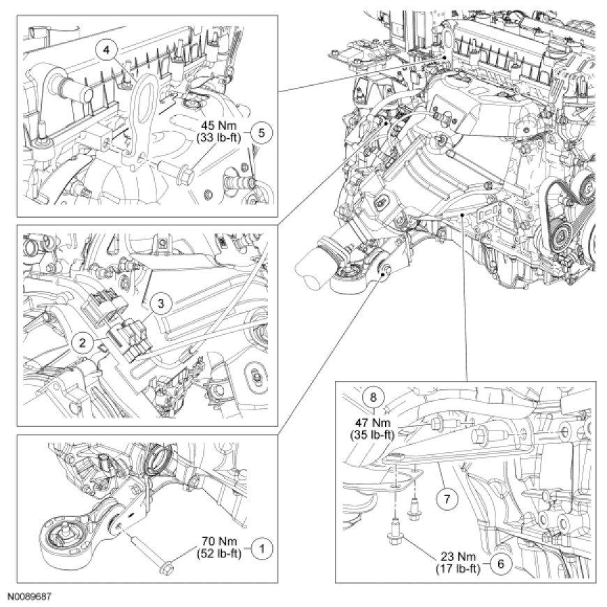 Engine Roll Restrictor, Catalytic Converter Bracket and Electrical Connectors