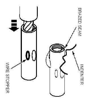 7. If visible, be sure to place the brazed seam toward the indenter.