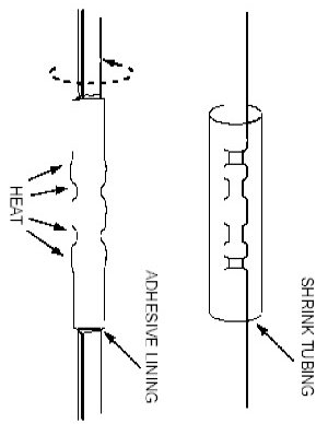 8. Use shielded heat gun to heat the repaired area until adhesive flows Out of both ends of heat shrink tubing.