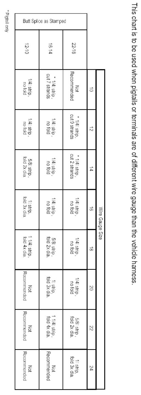 The given chart is to be used when pigtails or terminals are different wire gauge than the vehicle harness.