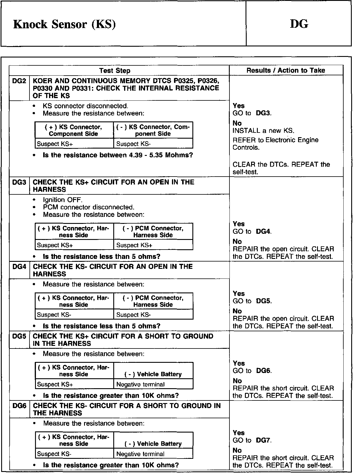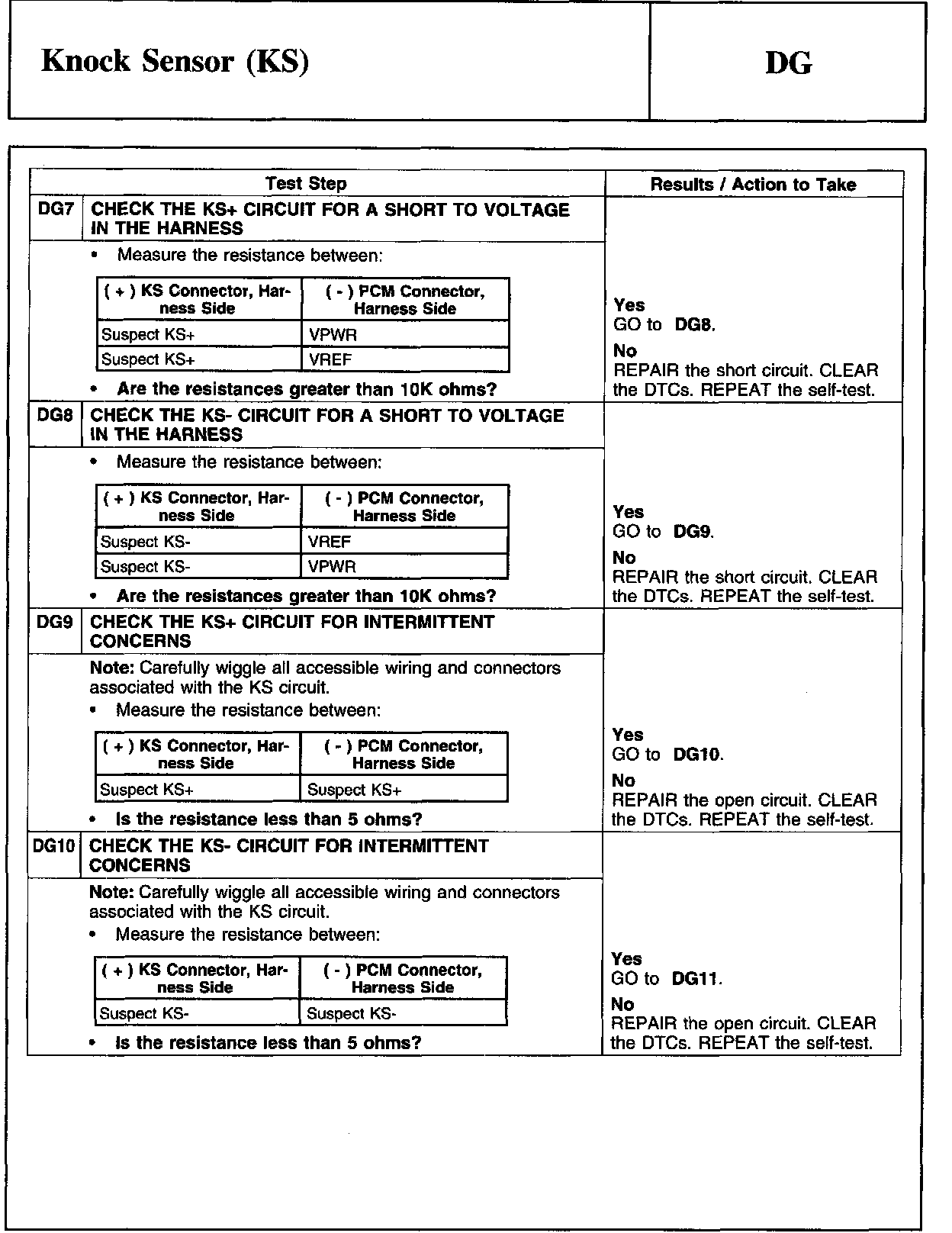 PINPOINT TEST DG: KNOCK SENSOR (KS)