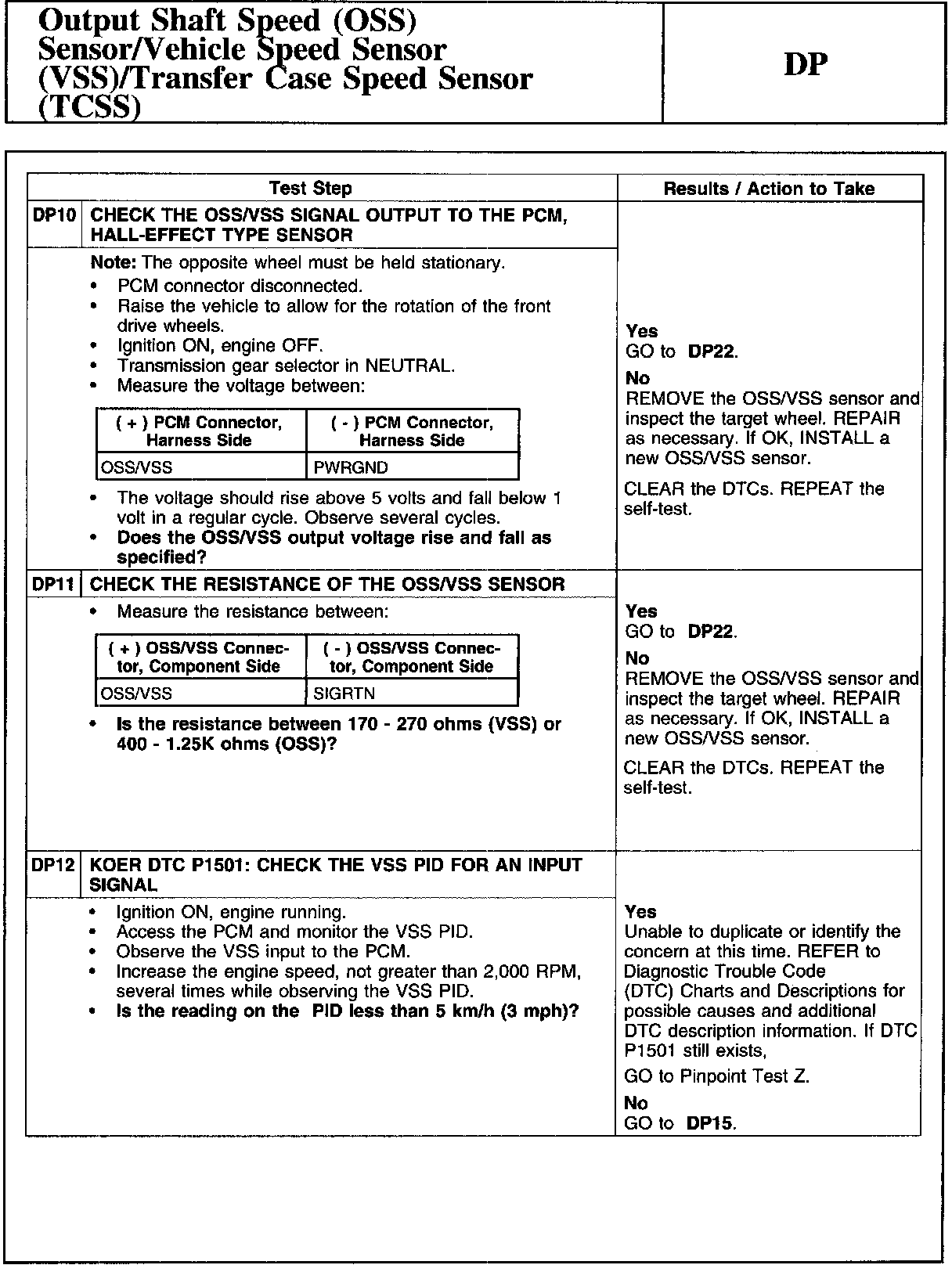 DP - Output Shaft Speed (OSS) Sensor/Vehicle Speed Sensor (VSS)/Transfer Case Speed Sensor (TCSS)