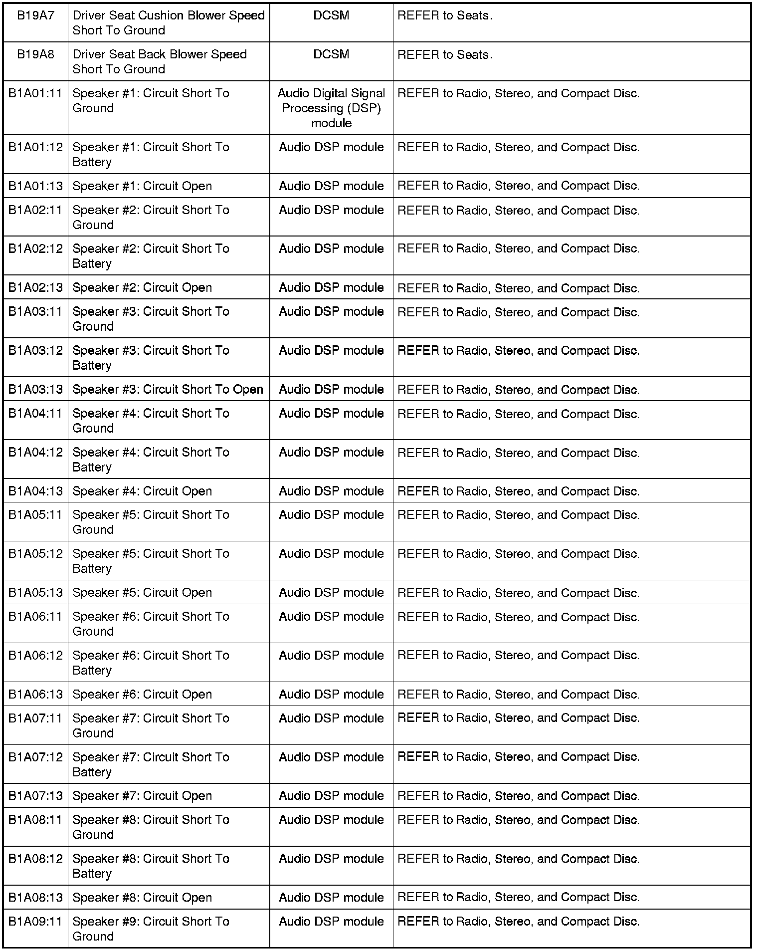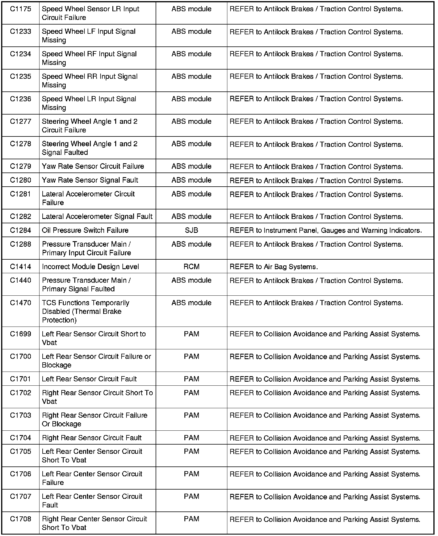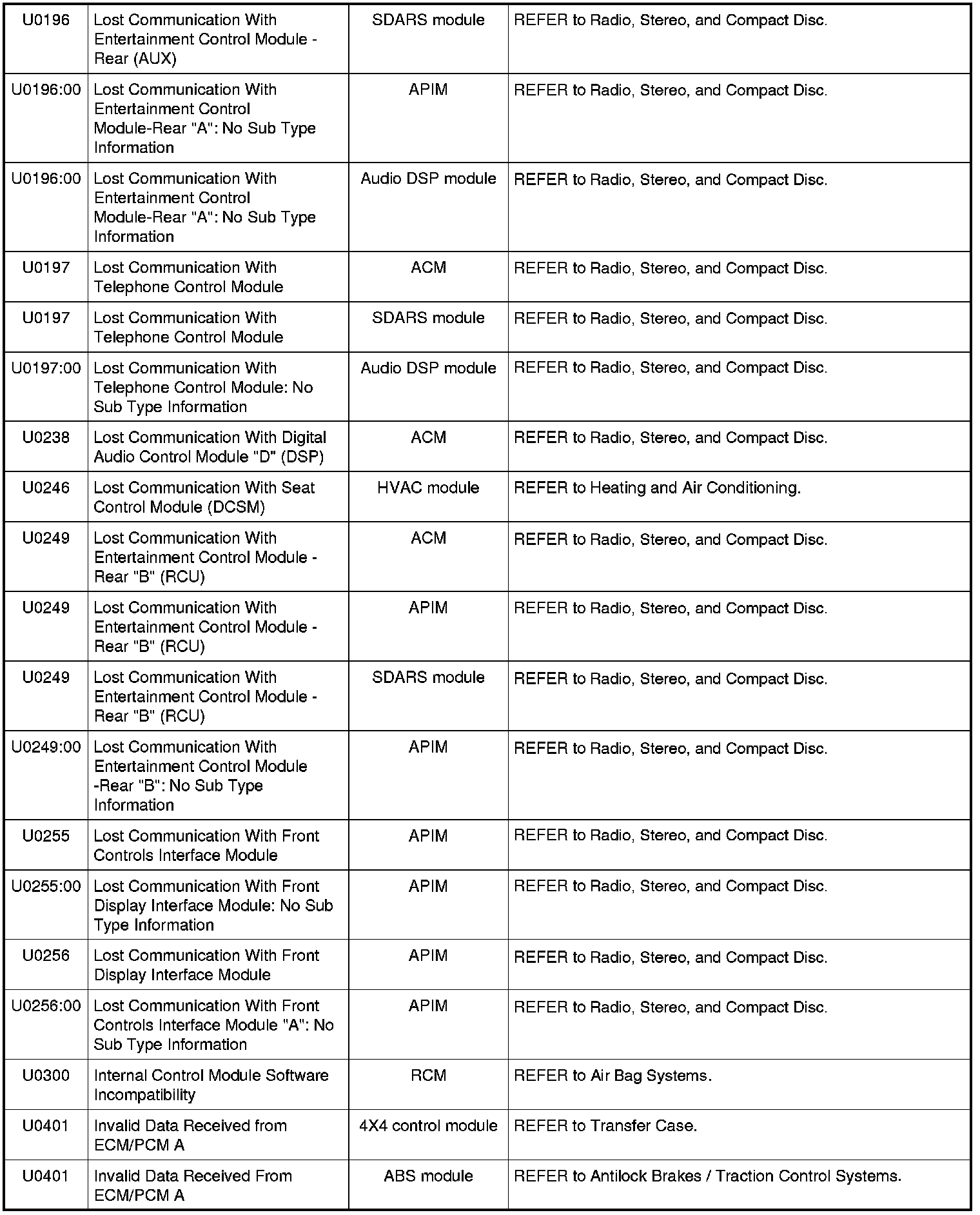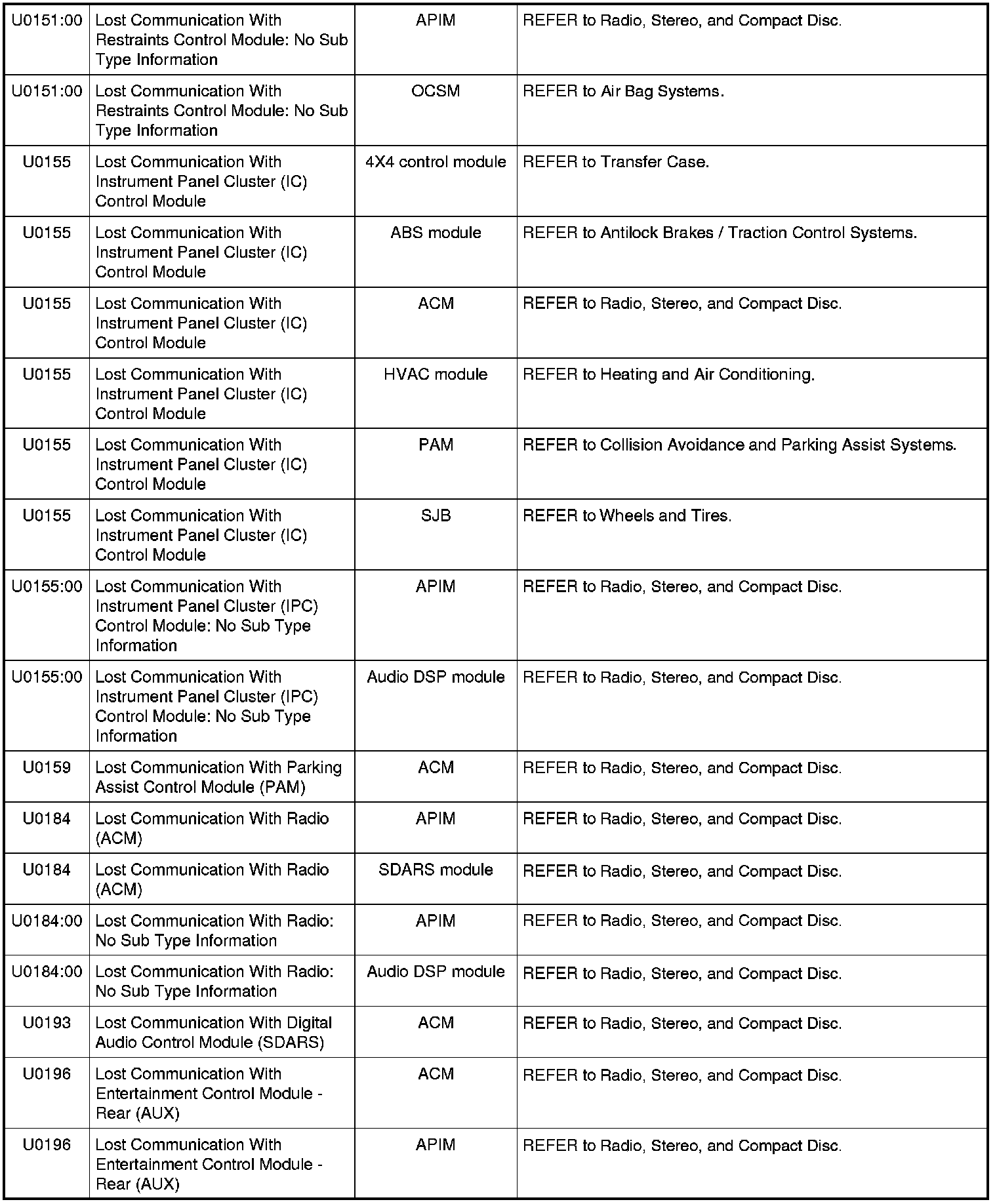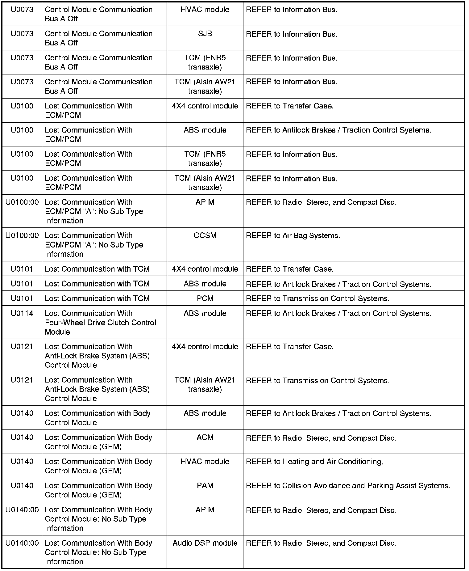 Home >> Ford >> 2009 >> Fusion AWD L4-2.3L >> Repair and Diagnosis >> Body and Frame >> Body Control Systems >> Testing and Inspection >> Diagnostic Trouble Code Descriptions >> Diagnostic Trouble Code (DTC) Chart