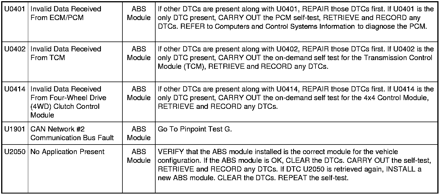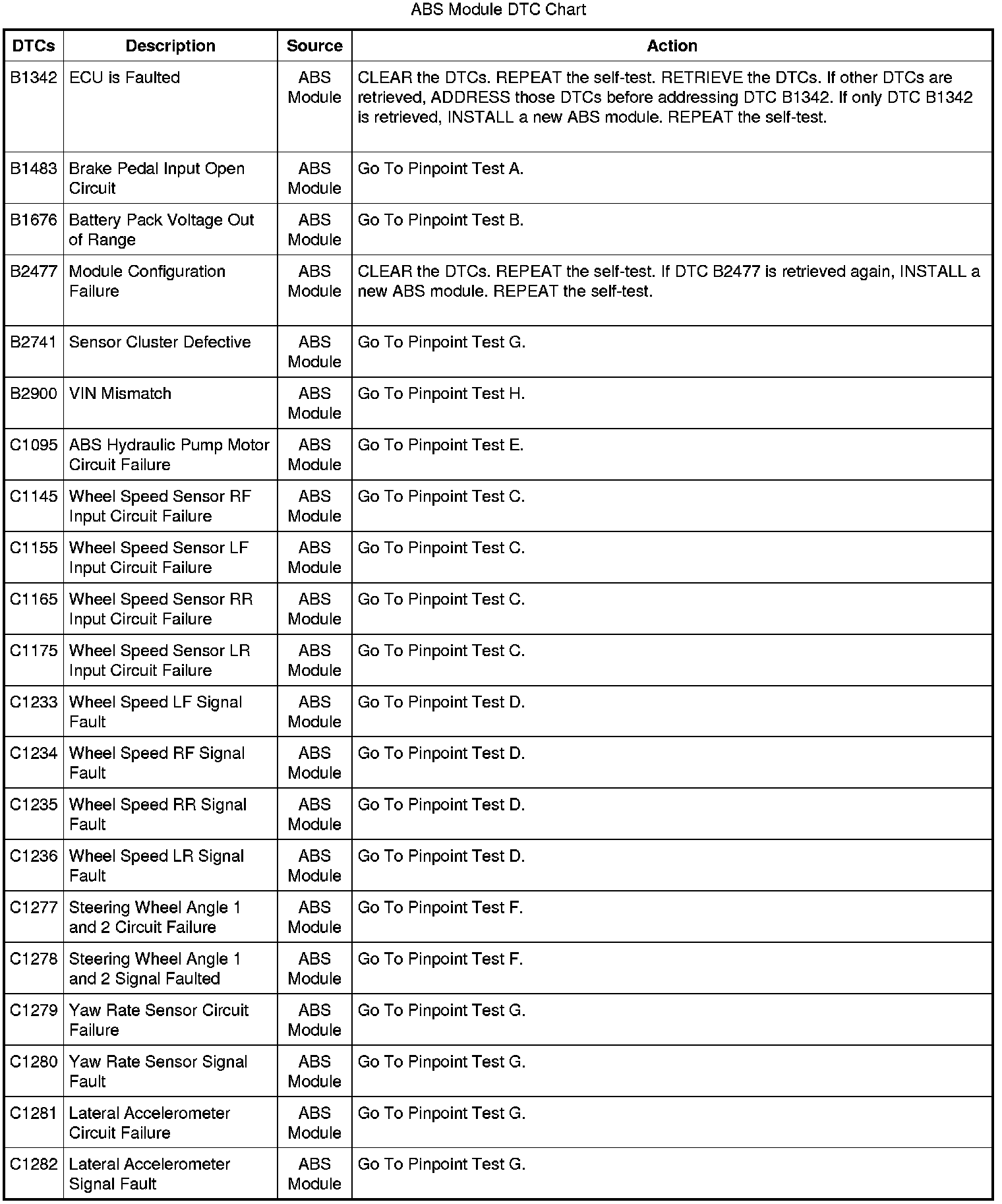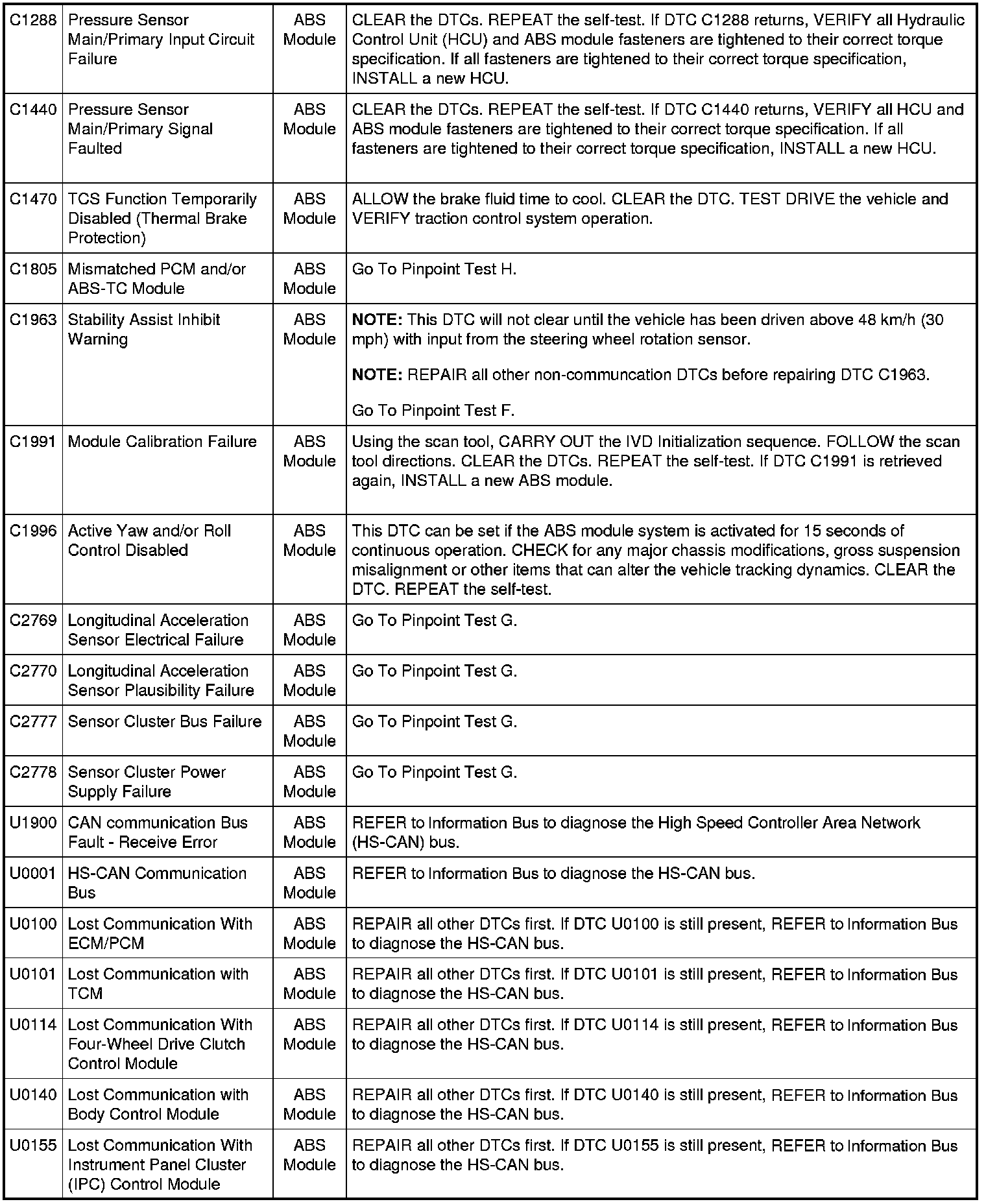 ABS Module DTC Chart