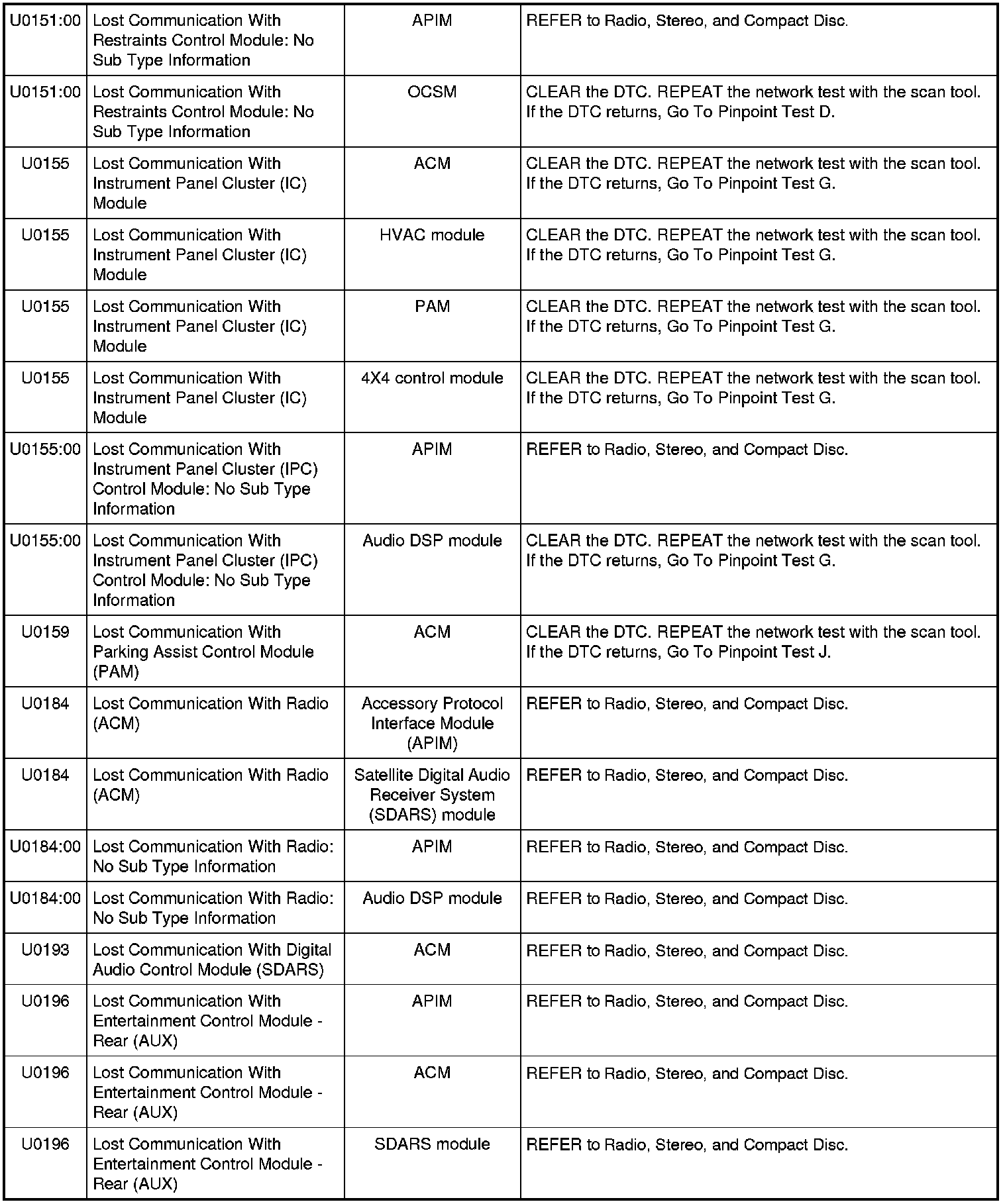 Home >> Ford >> 2009 >> Fusion AWD L4-2.3L >> Repair and Diagnosis >> Powertrain Management >> Computers and Control Systems >> Information Bus >> Testing and Inspection >> Diagnostic Trouble Code Tests and Associated Procedures >> Communications Network