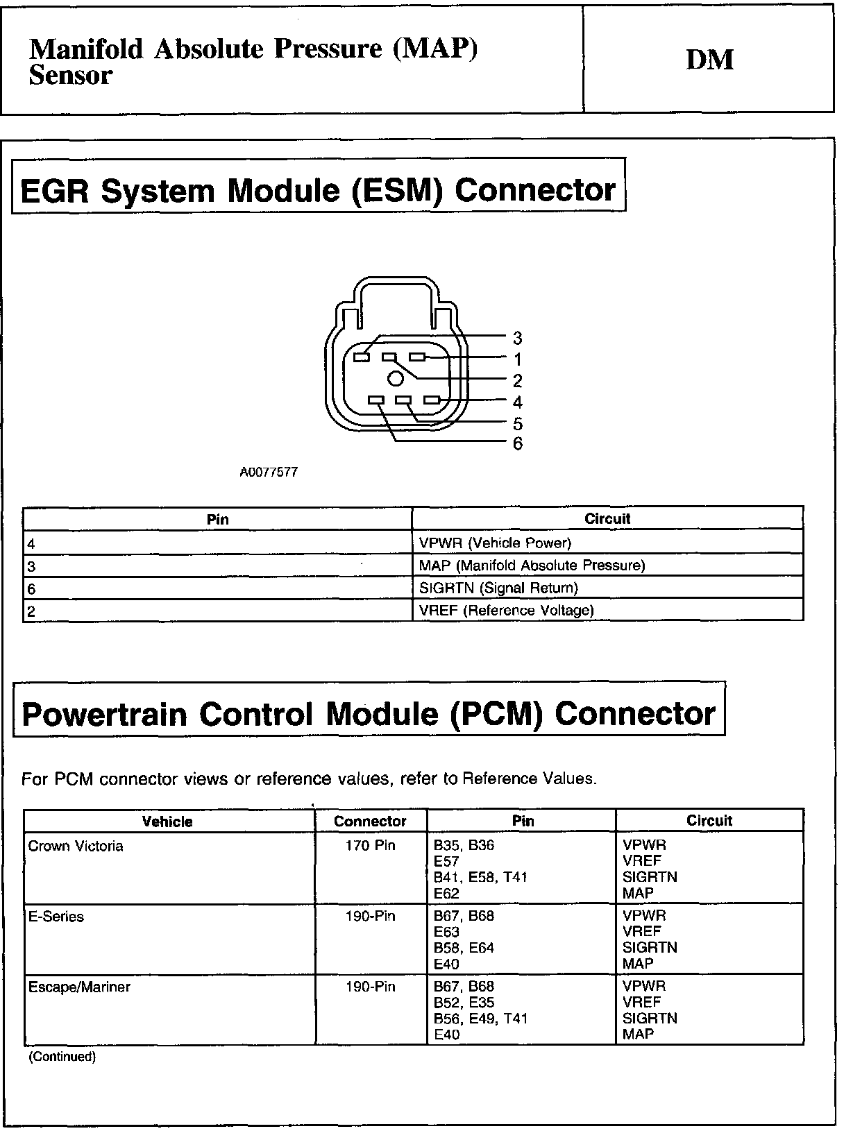Home >> Ford >> 2009 >> Fusion AWD L4-2.3L >> Repair and Diagnosis >> Powertrain Management >> Computers and Control Systems >> Testing and Inspection >> Pinpoint Tests >> DM - Manifold Absolute Pressure (MAP) Sensor