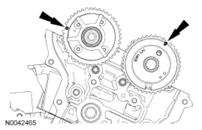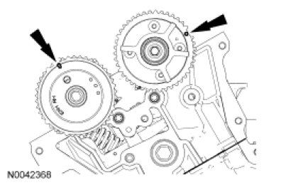- Align the marks on the timing chain with the marks on the camshaft and crankshaft sprockets.