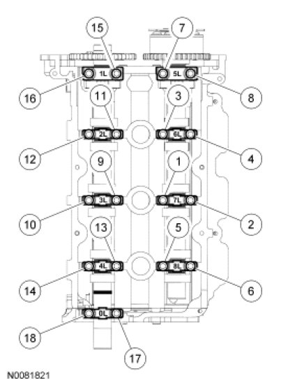 Stage 2: Individually loosen and then tighten each camshaft bearing cap to 10 Nm (89 lb-in).