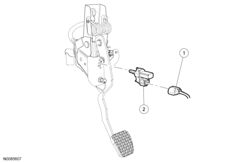 4. NOTE: When installing the speed control deactivator switch, it is automatically self-adjusting to the correct position. Do not pull up or push down on the pedal during installation. Initial installation of the speed control deactivator switch allows for one adjustment. If additional adjustments are necessary, install a new switch.