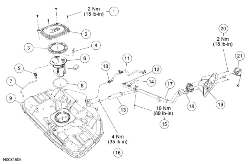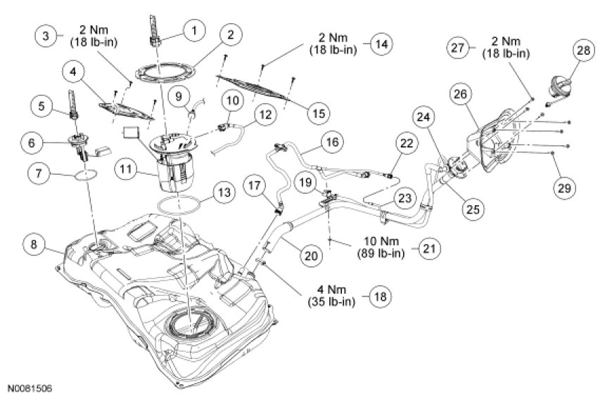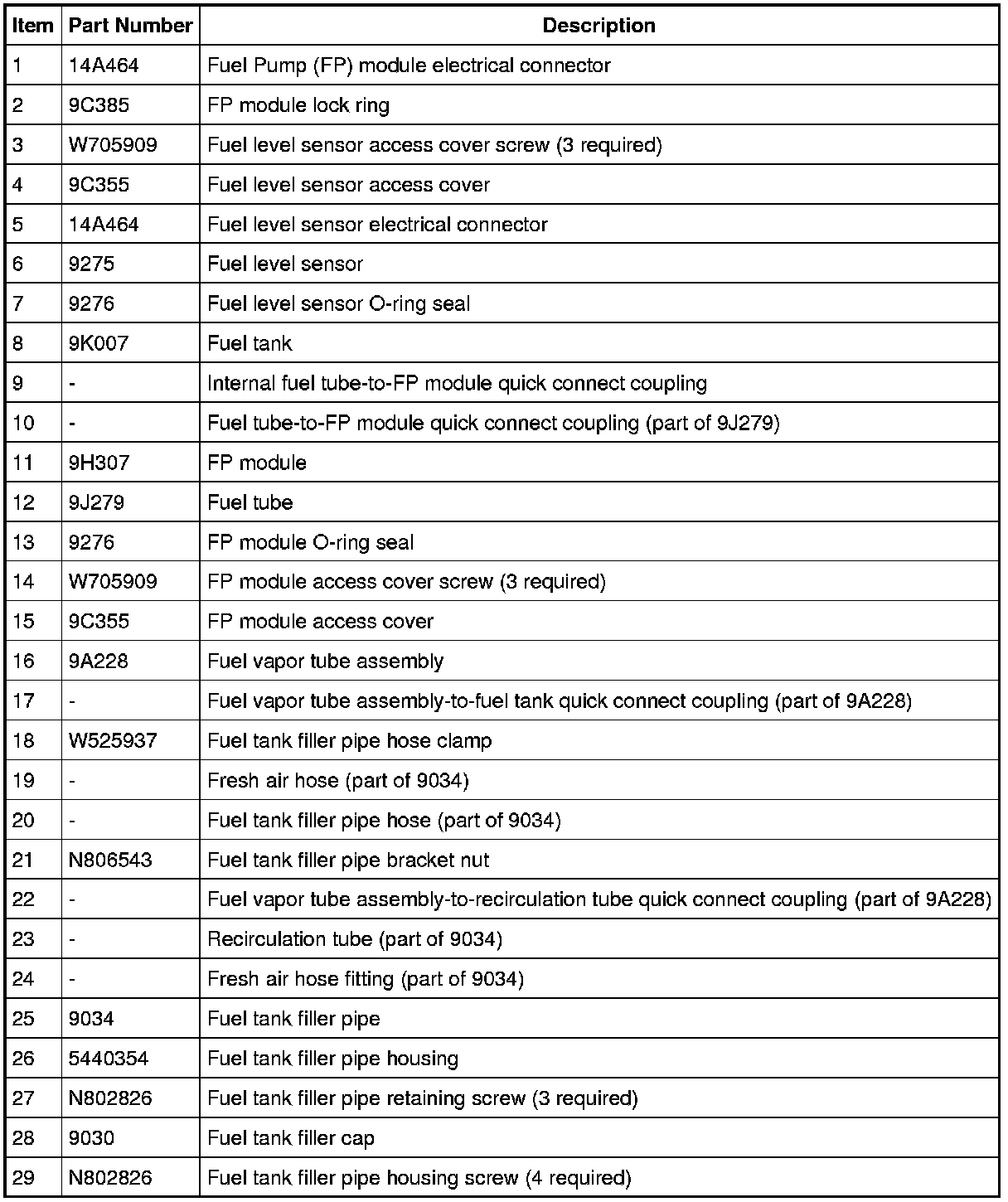Home >> Ford >> 2009 >> Fusion FWD L4-2.3L >> Repair and Diagnosis >> Powertrain Management >> Computers and Control Systems >> Fuel Level Sensor >> Service and Repair >> Fuel Tank and Filler Pipe - Exploded View