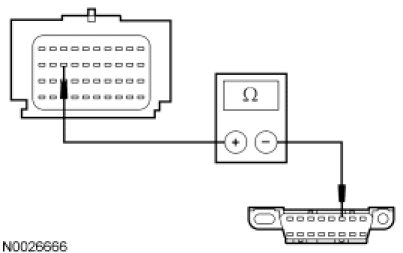 - Measure the resistance between the RCM C310b-18, circuit VDB04 (WH/BU), harness side and the Data Link Connector (DLC) C251-6, circuit VDB04 (WH/BU), harness side.