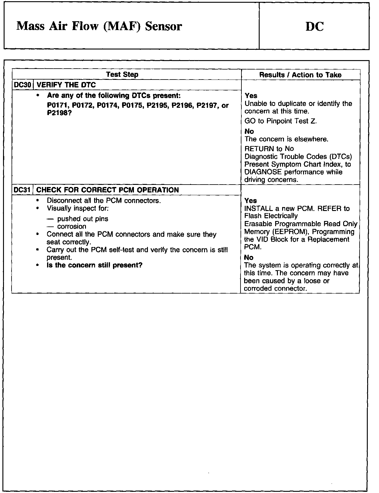PINPOINT TEST DC: MASS AIR FLOW (MAF) SENSOR